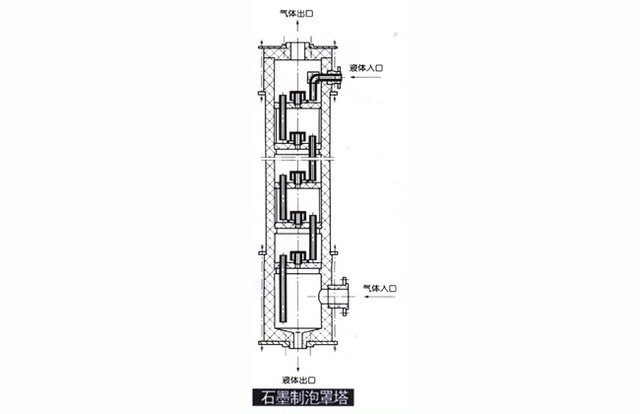 石墨氯化塔使三氯乙醛生產(chǎn)工藝 發(fā)生了革命性變化.不僅提高了生產(chǎn)效率與產(chǎn)品得率,簡化了工藝流程,還使原料消耗大幅度下降,成本隨之降低。石墨氯化塔釜外均可由石墨制作,質(zhì)量可靠,本公司可生產(chǎn)直徑400、650、700、1000等規(guī)格之塔頂冷凝器,塔節(jié)冷凝器、塔釜冷凝器,亦可按用戶圖紙要求制作。圖示為石墨制泡罩塔結(jié)構(gòu)圖。