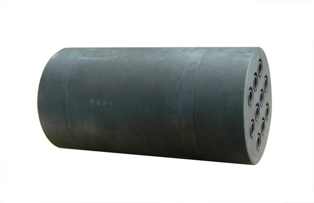 該系列型圓塊孔式石墨換熱器為目前較為先進(jìn)、性能較優(yōu)越的一種設(shè)備, 采用先進(jìn)的加工工藝制作。圓柱體換熱塊 采用標(biāo)準(zhǔn)單元塊,在石墨塊上鉆有兩組不相通的流道,且相互成直角。石墨件間采 用聚四氟乙稀密封,加裝壓力彈簧作熱脹 冷縮自動(dòng)補(bǔ)嘗裝置,具有結(jié)構(gòu)強(qiáng)度高,耐 溫耐壓性能強(qiáng).抗沖擊性能好,傳熱效率 高、使用壽命長、便于檢修等優(yōu)點(diǎn)。本系列產(chǎn)品可用作加熱器、冷卻器、冷凝器。作冷凝器用時(shí)底部需要加裝氣液分離器,