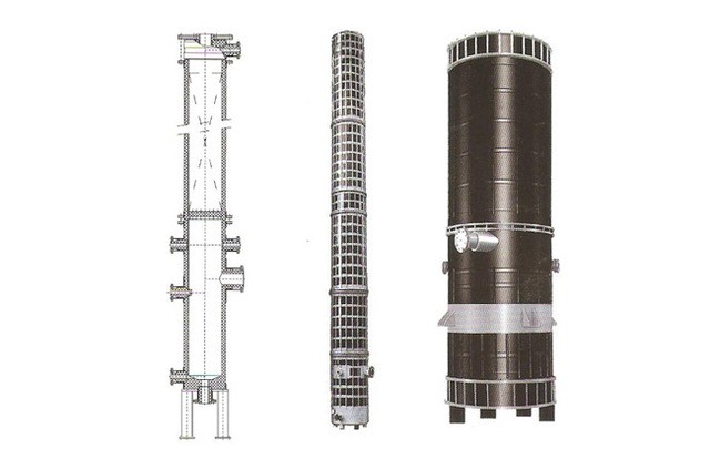 主要用于硫酸鉀生產(chǎn)系統(tǒng),成功替代了進(jìn)口設(shè)備。該設(shè)備要求頂部零部件耐溫540度左右,下部為多節(jié)式組合,介質(zhì)經(jīng)多次再分配冷卻、吸收,介質(zhì)出口溫度55度左右。設(shè)備整體全部采用石墨材料。我公司經(jīng)特殊處理,成功解決了設(shè)備耐高溫、雙向耐腐蝕等諸多技術(shù)難題,技術(shù)水平為國內(nèi)行業(yè)之最。